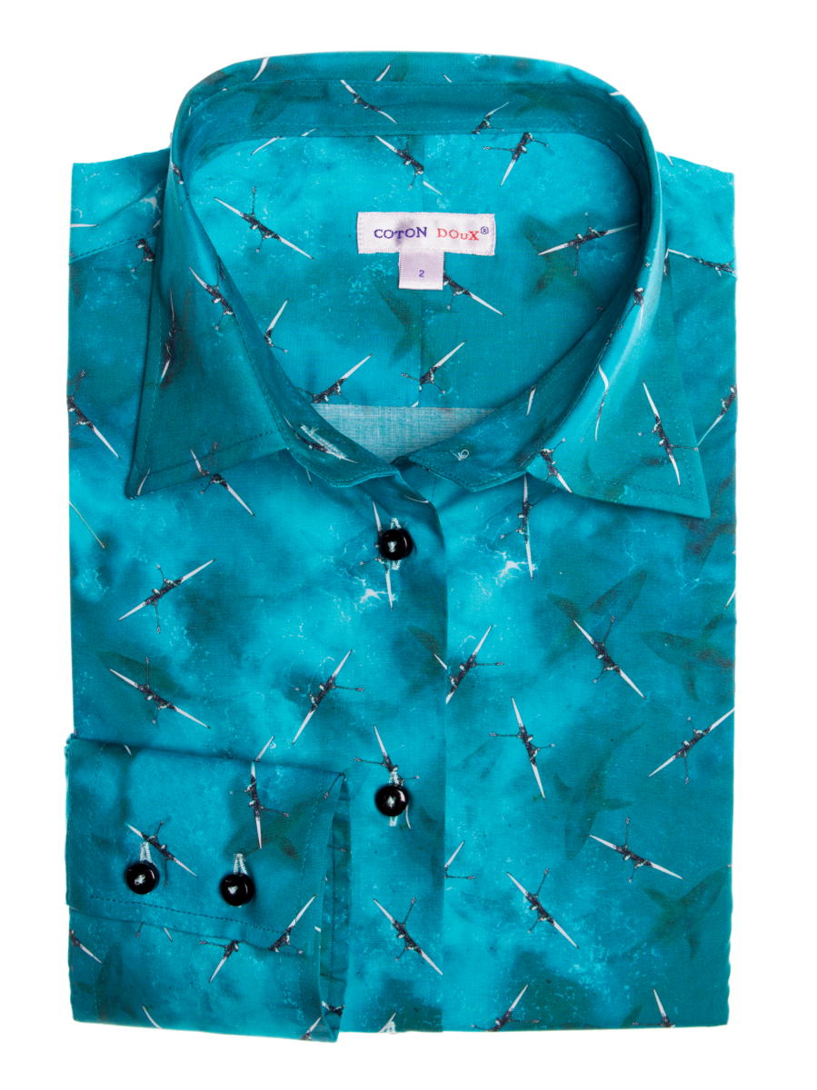 ブルーシャツ カヤック 海 柄シャツ レディース ブラウス 長袖 柄シャツ プリント おしゃれ かわいい 派手シャツ フランス イタリア デザインシャツ ブランド CotonDoux コトンドゥ l02ad1988kayak