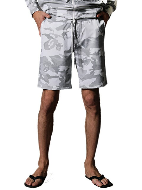***商品説明*** スターベアモチーフをカモフラージュに載せたオリジナルテキスタイルの ストレッチナイロン素材を使用したSTUD MUFFIN (スタッドマフィン)のショーツ!! 着心地良く伸縮性が高い為、ノンストレスで着用でき、速乾素材のラッシュガードタイプの商品となっております。