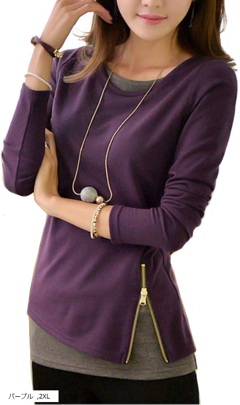 スメラ レディース カットソー ロング トップス チュニック レイヤード 長袖 ニット 無地 秋 冬 春 ゆったり かわいい ミセス デート服 20代 30代 40代 50代 大人 流行り ファッション ママ XXL/紫(パープル, 2XL) 詳しく見る