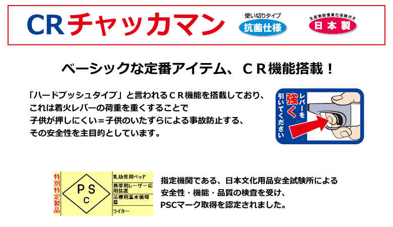 ●子供事故防止の為、着火レバーを堅くしてあります(安心のハードプッシュタイプ)。