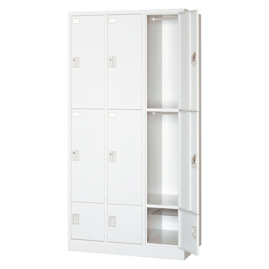 商品仕様 サイズ(外寸) 幅900×奥行き515×高さ1790mm サイズ(内寸) (上段)幅247×奥行き475×高さ660mm (中段)幅247×奥行き475×高さ640mm (下段)幅247×奥行き475×高さ257mm 本体重量 49.6kg 材質(本体) スチール、粉体塗装 材質(扉) メラミン焼付塗装 梱包数 1 鍵 シリンダー錠(下段以外) 付属品(1室あたり) ハンガーパイプ、(上段)、アミ棚(下段) 組み立て有無 なし(こちらの商品は、完成品です) お届けにあたってのご注意事項 納期 最短でご注文のよく営業日以降の出荷となりますが、メーカーの在庫、生産状況によっては2〜4週間程度お待ちいただく場合がございます。