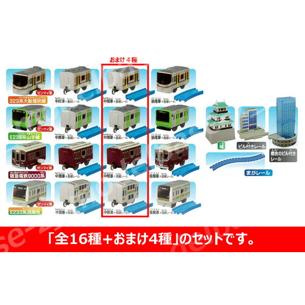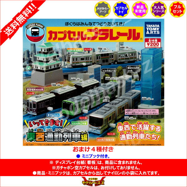 【全16種+おまけ4個】 東西で活躍する通勤列車が大集合した『いってきます!東西通勤列車編』が登場! 【E323系大阪環状線】と【235系山手線】の東西の通勤電車が夢の並走も実現可能!! 【E233系湘南色】の中間車がダブルデッカー仕様となっていることも特長です! 【阪急電鉄9000系】はゼンマイ仕様になって再登場! ストラクチャーも【城】や【都会のビル付きレール】【ビル付きレール】など、大都市圏をイメージしたレイアウトを築くのに欠かせないものばかり! たくさん集めてカプセルプラレールワールドを広げよう!! ★