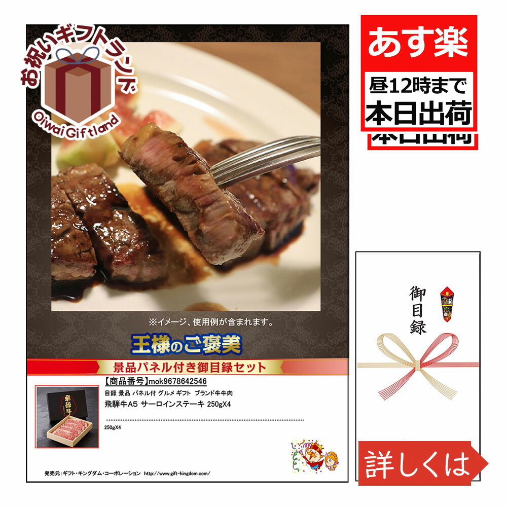 二次会 忘年会 飛騨牛 目録 景品 パネル付 グルメ ギフト 景品引換券 あす楽 | 目録ギフト 王様のご褒美 飛騨牛A5 サーロインステーキ 250gX4 がもらえる商品引換券 | 賞品 景品 |